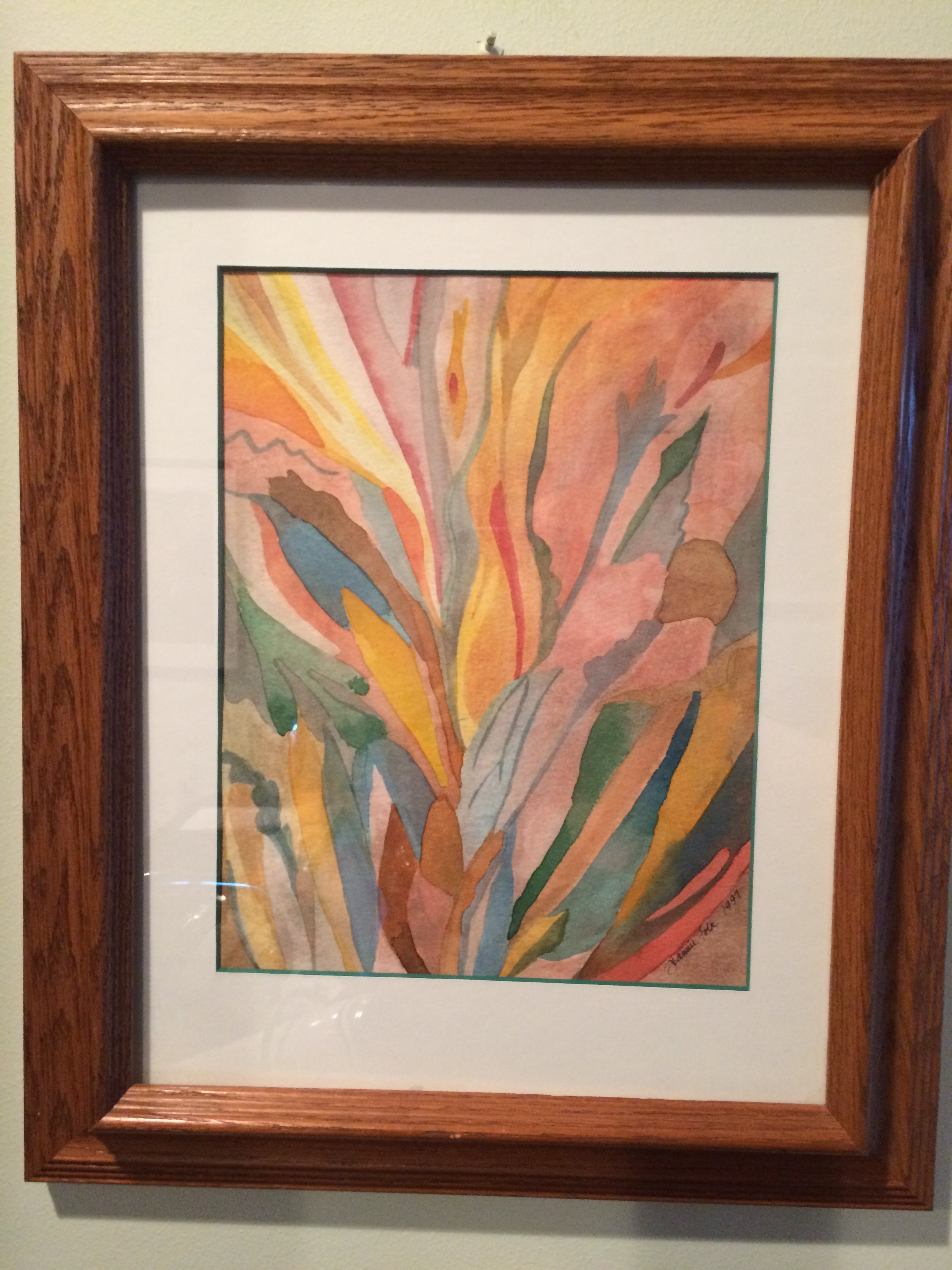 Many years ago, I took watercolor lessons. I even have one of my paintings hanging in my kitchen. Watercolor is something that I love to hate. Watercolor is so unpredictable; the type of paper, the quantity of water mixed with the paint, and the humidity all combine to make it something that cannot be controlled. And, as the oldest of seven, I grew up wanting to be in control. Being unable to control it was the part I hated. However, when I did it, I really was able to live in the moment. I could lose myself in what I was painting and not think about the past, current, or future. That was the part I loved. When I moved last fall, I found the plastic bin with my paint. They’re here in a closet (rather than far away in a storage unit). I hope to find the time to take up this hobby again. I don’t want this to be “something I did once.” I need to carve out the time. Even though doing so does not seem possible now, perhaps a good goal would be next summer.